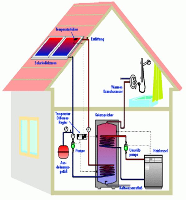 Fig. 1.6 Prepararea apei calde menajere cu panou solar