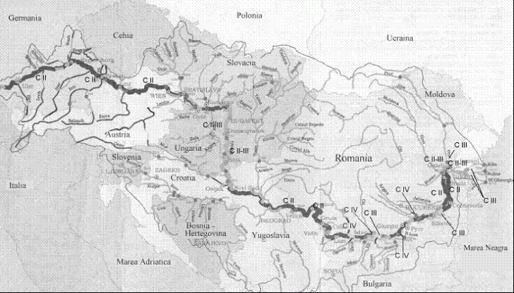 Figura 62. Harta calitatii apei Dunarii si a afluentilor (dupa IAD, 2000).