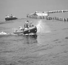 Figura 64 . Amplasarea barierelor flotante pentru reducerea dispersie petrolului la suprafata. Sursa: EPA.