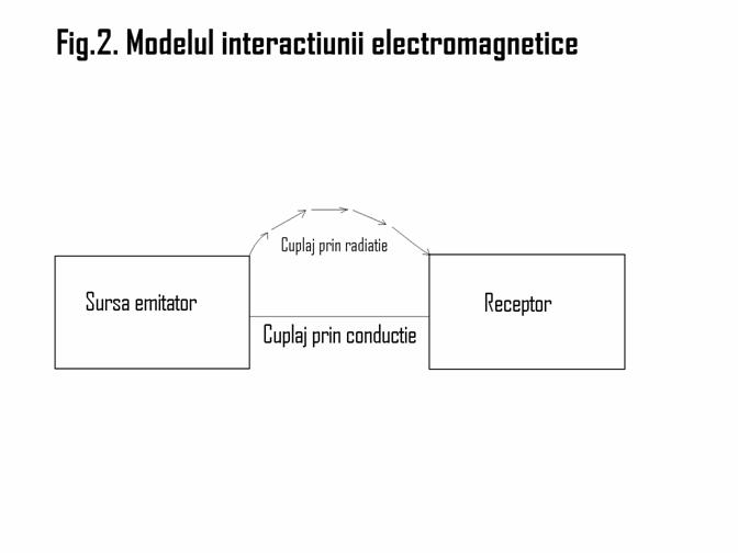 Un model simplu al interactiunii electromagnetice intre sistemele electrice este prezentat in figura 2. Cele 2 sisteme izolate actioneaza unul drept sursa emitatoare de energie electromagnetica iar celalalt drept receptor de energie. Cuplarea energetica intre sisteme se realizeaza prin sau fara conductie electrica.