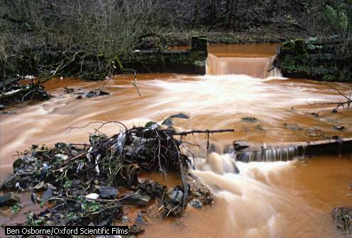 diferite locuri, cum ar fi contaminarea unui râu dintr-o zona
