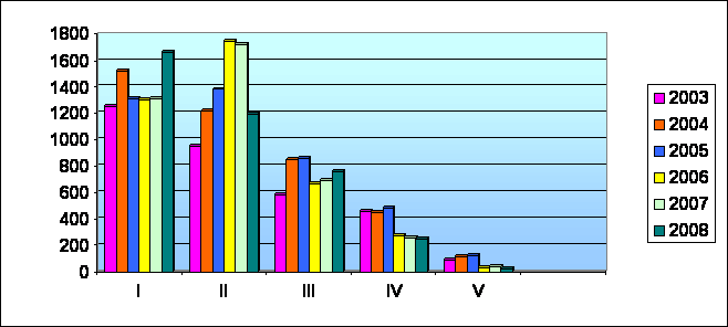 Evolutia calitatii apei raurilor in perioada 2003 2008 in Regiunea 1 NE Fig. 4.3.1.3.