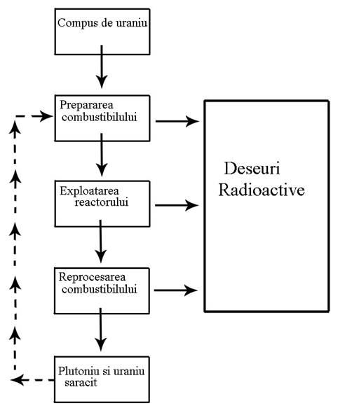 Deseurile cu activitate ridicata produse la reprocesarea combustibilului uzat contin peste 95% din activitatea intregului ciclu al combustibilului nuclear. O data solicitate, deseurile trebuie depozitate timp de secole, cu racire corespunza- toare, supraveghere si renovare priodica a cladirilor de depozitare. Totusi, timpi asa de lungi de depozitare vor impune o povara asupra generatiilor viitoare si va exista chiar si un risc, desi foarte mic, al unor scurgeri accidentale. Din aceste motive in toate tarile care au un program nuclear se desfasoara in mod activ