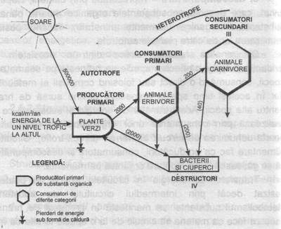 Fig. 1. Schema cea mai simpla a unui lant trofic complet (Odum, 1975)