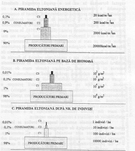 Structura trofica a ecosistemelor a fost descrisa pentru prima data cantitativ de catre ecologul englez ELTON (1927). Pentru acest motiv reprezentarea succesiva a nivelurilor trofice dintr-un ecosistem sub forma unei piramide se numeste in ecologie piramida trofica sau piramida eltoniana.