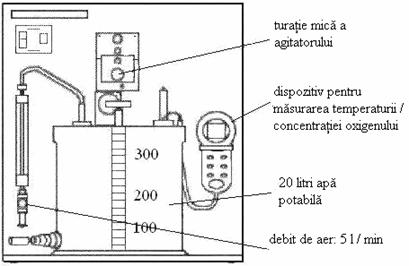 - se repeta experimentul pentru o turatie mare a agitatorului si se vor determina de asemenea valorile coeficientului de absorbtie Ks si a capacitatii R(10) de oxigenare a apei la temperatura de 10sC;