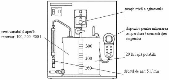 - studierea transferului de oxigen in apa naturala se va face prin mai multe experimente practice, utilizand aeratorul din dotarea standului de laborator;