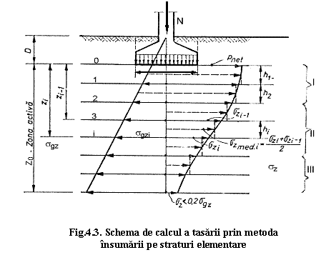 Terenul de fundare, din cuprinsul zonei active, se imparte in straturi elementare cu inaltimea hi 0,4 B si cu conditia ca fiecare strat elementar sa aiba in componenta sa pamant cu aceleasi caracteristici fizico mecanice.