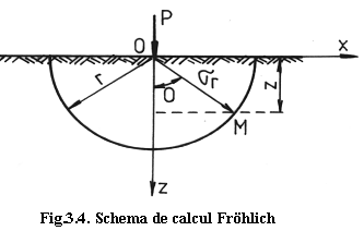 Se considera o semisfera de raza r si o forta P care actioneaza la suprafata terenului in punctul O, fig.3.4. Pe sfera se ia un punct M de coordonate z si q