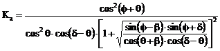 in care: Ka = f(b q f d), este coeficientul impingerii active a pamantului si are expresia