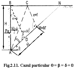 In cazul particular, q b d = 0 din fig.5.11, suprafata de sprijin este verticala, suprafata libera a terenului este orizontala iar frecarea dintre pamant si suprafata de sprijin este nula.