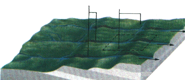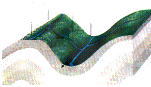 rigole adânci, cu înaltimea (h) = 25 - 50 cm;
