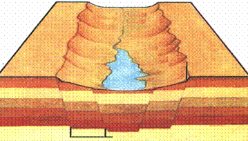 în jos straturile pe am-bele parti, astfel încât o fa-lie