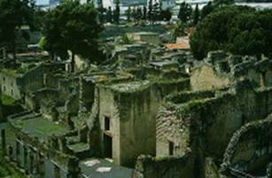 Situat intre Napole si Pompei, Herculanum era un oras mic de aproximativ 5.000 de oameni. A fost fondat de catre locuitorii zonei sau de catre Greci ca un post de schimburi comerciale. Cresterea o-rasului a urmat modelul Pompeiului, si ambele au fost cucerite de catre romani in 89 i. Hr. Cea mai mare parte din Herculanum era formata din vile ale romanilor bogati care intretineau micile magazine si carciumile ce alcatuiau comertul orasului. |