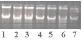 Fig. 1 Verificarea calitatii ADN extras în gel de agaroza 0,8%