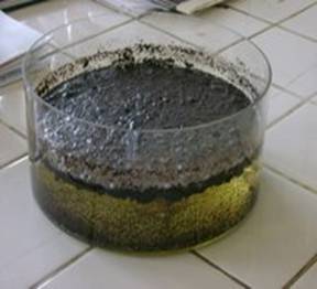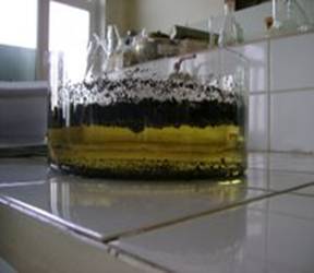 Fig.4.7- spill sorb 2 cu apa si titei,dupa filtrare Fig.4.8- Apa,motorina si spill sorb 2