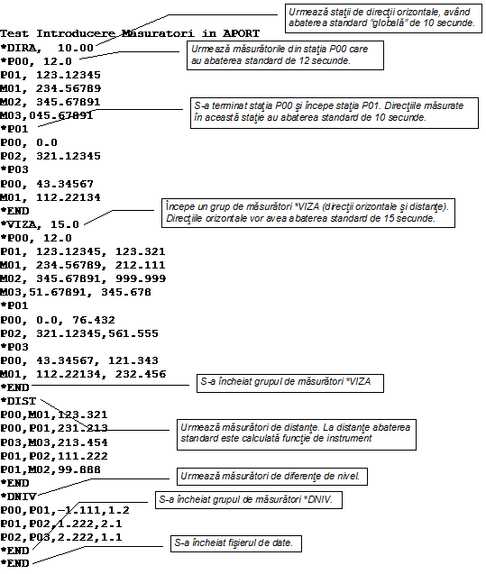 Un fisier poate contine mai multe grupuri de masuratori (este recomandabil ca un fisier sa contina TOATE masuratorile efectuate intr-o etapa, indiferent de categoria lor).