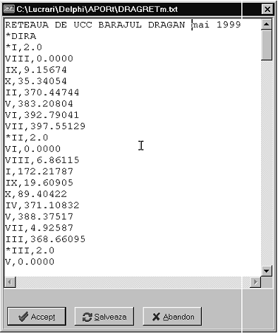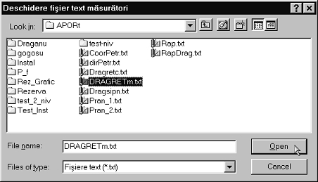 Optiunea “Fisier text” din meniul Masuratori da posibilitatea introducerii tuturor categoriilor de masuratori dintr-un fisier text (ASCII).