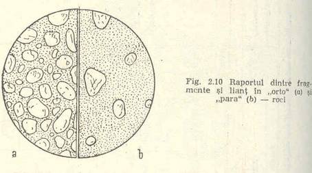 Structura: se foloseste pentru rocile consolidate si se refera la raportul cantitativdintre particule si liant. Astfel se vorbeste in general de orto-roci atunci cand predomina fragmentele (ex. Ortobrecii) si respectiv para-roci atunci cand predomina liantul (ex. Paraconglomerat).