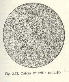 Pentru rocile cristalizate (micrite, sparite, dolomite, silicolite, fosforite, etc.), dimensiunile se definesc prin termenii: cripto-, micro-, mediu-, larg cristalin.