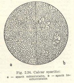 Structuri diagenetice (de cristalizare si recristalizare) caracteristice pentru sparite, accidente silicioase, bauxite, fosforite.