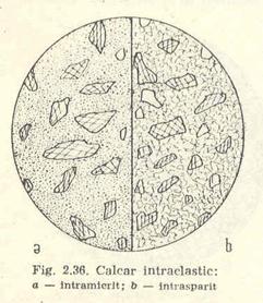 -de precipitare chimica (alocheme): intraclaste, oolite, pelete, lumpuri