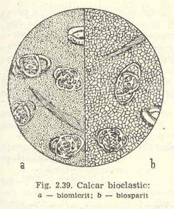 -de precipitare biochimica (bioclaste) schelete, cochilii, valve, spiculi, placi