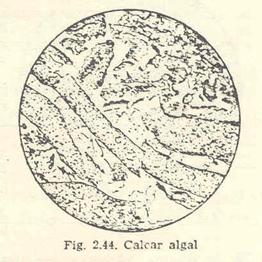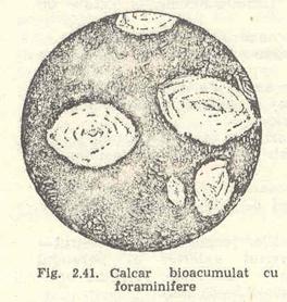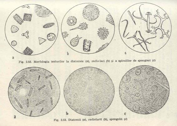 Structuri organogene realizate prin precipitare organogena si acumulari de bioclaste (calcare bioacumulate, calcare bioconstruite (coraligene, algale), diatomite, spongolite, radiolarite, fosforite).