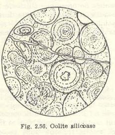 Textura: oolitica tipica. Forma sferica, subsferica sau ovoidala