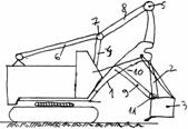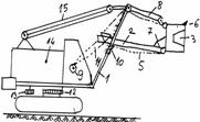 11-cablul de revenire 12-coraoana dintata 13-pinionul de atac 14-platforam rotitoare 15-cablul pt modificarea inclinarii sagetii. D.p.d.v. cinematic excavatorul su cuoa dreapta e alacatuit din urmatoarele mecanisme: