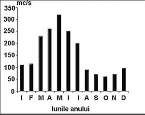 de regimul precipitatiilor, debitul scazand foarte mult in perioadele de timp