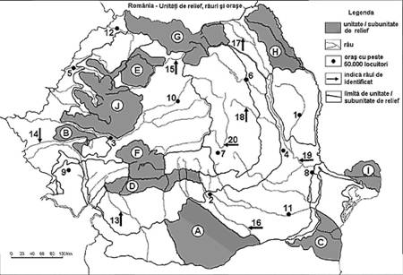sunt in unitatea de relief marcata, pe harta, cu litera: