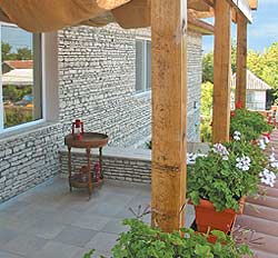 pergolele ce acopera terasa sunt din esente lemnoase, iar umbrarul este