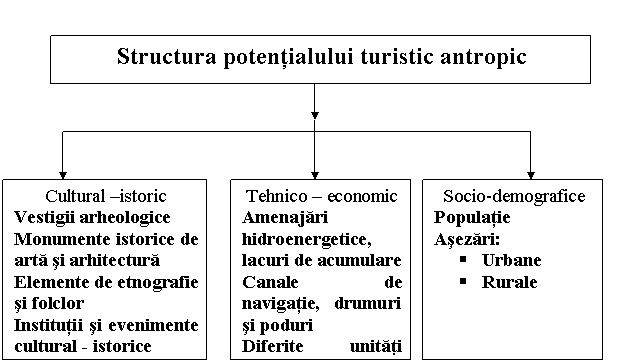 Potențialul antropic- reprezintă totalitatea resurselor turistice rezultate ale creației umane din punct de vedere cultural - istoric și tehnico -economic din cadrul unui teritoriu sau al unei așezări umane considerate ca având valoare turistică sau constituind bază de existență pen 242f56c tru turism.