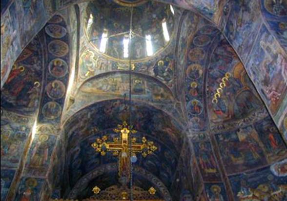 unde pe peretele de vest sunt pictati Mircea si fiul sau Mihail in costume de