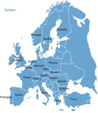 Occidentala, Europa Orientala, tarile nord-americane, localizari turistice ale
