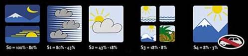 La nivel european, clasificarea lentilelor de protectie solare se face în cinci categorii, de la S0 la S4, în functie de gradul de transmisie al luminii vizibile (EN 1836). Astfel lentila S0 care transmite între 80 si 100% din lumina vizibila, este incolora sau foarte putin colorata, si se adreseaza mai ales protectiei fizice a ochiului. In schimb, o lentila S4 lasa sa treaca doar între 3 si 8% din lumina vizibila. Foarte închisa la culoare, este destinata mersului pe ghetar sau zapada în plin soare. In general, protectia contra luminii vizibile este utila pentru a evita orbirea provocata de o luminozitate prea puternica. Absortia partiala a luminii vizibile corespunde mai degraba la o notiune de confort vizual.