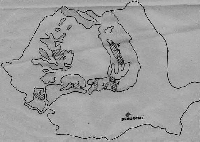 - localizari sub forma punctelor izolate distribuite in jurul masivului, in interiorul acestuia sau de-a lungul vailor;