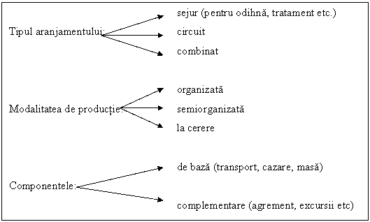 Producerea si comercializarea serviciilor, atât a celor individuale, cât si sub forma pachetelor de servicii, reprezinta obiectul de activitate al agentiilor de turism. O definire si o caracterizare complete a pachetului de servicii turistice sunt dificil de realizat fiind determinate de complexitatea acestuia, explicata la rândul ei de complexitatea componentelor sale: servicii oferite de prestatori (cazare, alimentatie, transport, tratament, agrement etc.), servicii proprii agentiilor de turism si a celorlalti intermediari specializati în comercializarea lui (forma de prezentare, serviciile de informare, publicitatea etc.). Aceste servicii trebuie asigurate constant si la un nivel calitativ ridicat. Pachetul de servicii poate reprezenta un ansamblu de bunuri si servicii destinate satisfacerii nevoilor generale si specifice ale turistilor, aducându-le satisfactie prin consum.