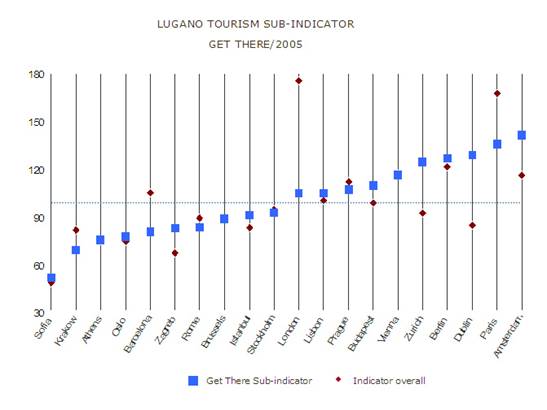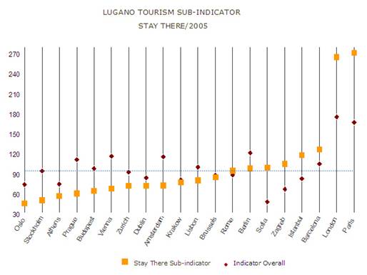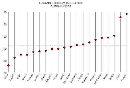 Indicatorul de turism Lugano a fost conceput pentru a suplimenta si pentru a ajuta masurarea orientativa, iar valorile acestuia se refera la ce a fost produs în si pentru o destinatie.Scopul lui este de a monotoriza potentialul atractivitatii, unei destinatii pentru turism urban, mai degraba decât competitivitatea.Valorile au fost selectate din perspectiva consumatorului.În acest fel comparatia finala între destinatii intrinseci incluzând capabilitatea de a raspunde pretinselor cerinte. Acest indicator permite compararea atractivitatii unei destinatii cu majoritatea oraselor importante.