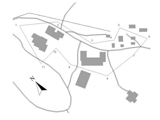 Fig. 1. Statiunea Borsa. Ridicarea topografica a obiectivelor nou aparute (extras pentru prima faza de lucru - reprezentarea bruta a detaliilor topografice).