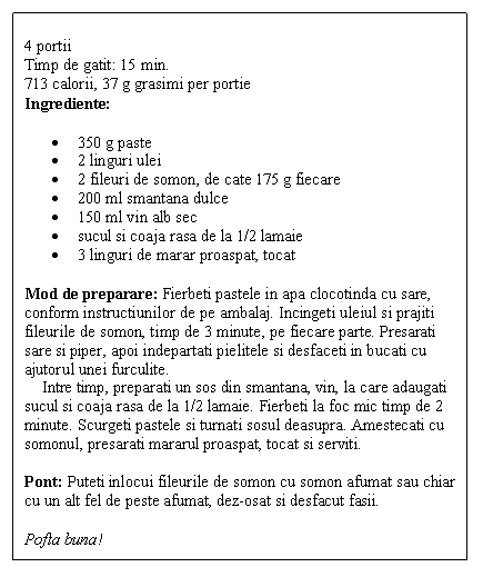Paste cu sos de smantana si somon