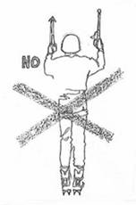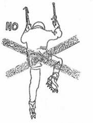 -Pioletii sunt plasati prea aproape unul de celalalt (fig.47) sau prea departati (fig.46). Echilibrul nu e prea bun si simtiti mai multa oboseala si deci ramâneti atârnati în pioleti.