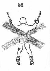 -Picioarele sunt prea apropiate unul de celalalt, (fig.68), echilibrul e amenintat si riscati sa va agatati un picior cu coltarul. Daca picioarele sunt prea departate, e dificil, chiar imposibil sa plasati bazinul deasupra piciorului de sprijin.