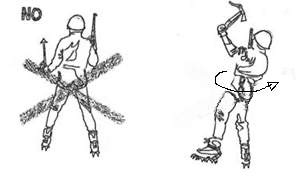 -Când încercati sa scoateti un piolet din gheata, sa nu încercati sa-l scoateti si pe celalalt. Acest fapt risca sa sensibilizeze cele doua ancorari.