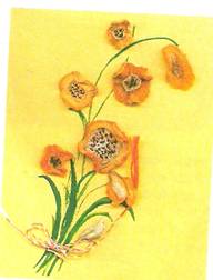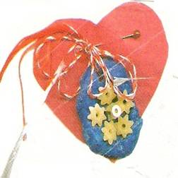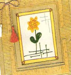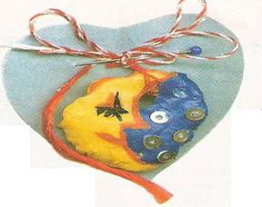 din ață, bețișoare, hârtie. Floricica din carton pe care se atașează
