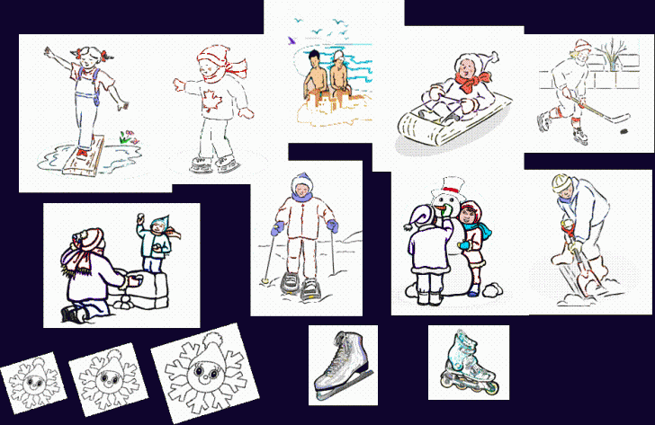 Priveste cu atentie imaginile si coloreaza numai jocurile-sporturile de iarna.Coloreaza cifra care arata cate jocuri-sporturi de iarna ai descop 414h77e erit tu in fisa;