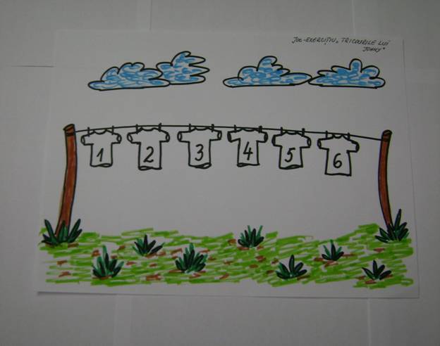 Voi arata copiilor ca vom face o activi- tate matematica deoarece vrem sa ve- dem cine va lucra cel mai bine exercitii pentru numerele pe care le-am invatat pana acum. Voi prezenta jucaria-surpriza pe care o vom folosi in timpul jocului: - Acum, cand iarna grea a trecut,la noi a sosit un musafir neasteptat.Este o pasare si ea ne va ajuta sa lucram in aceasta lectie.In cioc are o scrisoare pe care am sa v-o citesc. Citesc scrisoarea: DRAGI COPII DIN GRUPA MARE M-am oprit aici din zbor. Rau aripile ma dor. Am aflat ca este-aici O multime de pitici. Ma prezint,deci, fara frica. Ma cheama Johny Ciorica. Am in palarie-ascunse Bilete cu probe multe. Bine de le rezolvati Aplauze capatati. La lucru!Fete, baieti! Nu uitati sa fiti atenti! Prezint pe intelesul copiilor scopul jocului:Acest joc ne va ajuta sa stim mai bine sa rezolvam exercitii pentru numerele invatate si sa devenim mai isteti, mai destepti.Jocul se numeste "Numara si potriveste". Specific faptul ca: -Inainte de a incepe lucrul,sa ne amintim pana la ce numar am invatat sa numaram -Sa privim flanelograful si sa ne amintim cum arata aceste numere.Trebuie sa corectam greselile si sa vedem de ce nu a fost corecta asezarea numerelor. Cer apoi copiilor sa numere crescator si descrescator 1-7, urmand sa gaseasca vecinii unor numere: -Ce numar se afla inaintea lui 3? Dar in fata lui 5? -Ce numar urmeaza dupa 4? Dar dupa 6 -Acum, pentru ca vad ca v-ati amintit ce am invatat putem sa ne jucam noul joc matematic. Explic regulile jocului si desfasurarea lui: -Asa cum ne-a scris Johny Ciorica,vom gasi in palaria lui biletele pe care sunt scrise exercitiile pe care le vom rezolva. Cate un copil va extrage din palarie cate un biletel,eu voi citi ce scrie pe el si vom rezolva exercitiul cerut de Johny. Voi demonstra modul de desfasurare cu ajutorul copiilor. Trecem la executarea jocului de catre copii.Cer extragerea biletelor,citesc enuntul exercitiilor. Exercitii propuse: 1.Alege numerele potrivite-se lucreaza pe plansa de la"Joc matematic figurativ" -bilete galbene- 2.Joc-exercitiu"Iepurasul si morcovii" -2 probe sub forma de concurs-sa-l ajute pe iepuras sa culeaga atatia mor- covi cat ii arata cifra de pe paleta. -bilete roz- 3.Joc-exercitiu"Ursuletii in padure": Niste ursuleti s-au ascuns in padure. Cautati cati ursuleti sunt in padure si lipiti cifra corespunzatoare-bilet verde 4.Joc-exercitiu"Pisica si musafirii"-sa numere,sa recunoasca,sa aleaga cifra potrivita.-bilet portocaliu- 5.Exercitiul"Fluturii vin la flori"-fiecare fluturas se aseaza pe floarea care are atatea petale cate puncte are el pe ari- pioare -bilet albastru- 6.Exercitiu de compunere a numarului 7 -sa aleaga acele gargarite care au pe aripioare 7 buline negre-bilet alb- 7.Exercitiu de consolidare a numeralu- lui ordinal:Johny si-a intins la uscat tricourile dar nu-i place sa le vada pe toate albe.Asa ca va roaga sa-i colorati al doilea cu rosu,al cincilea cu verde si al treilea cu galben. -bilet mov- Cautand in palarie un copil va descoperi ca nu mai este nici un bilet. Voi manui in asa fel jucaria,incat sa vada fisa ascunsa la spatele ei.Voi scoate sulul de hartie si vom intui fisa de lucru.Rezolvam oral exercitiul,iar apoi fiecare, independent in caiete. -fiecare trebuie sa numere si sa li- peasca in tabel cifra potrivita cu numa- rul de figuri din desen Voi face aprecieri colective si individu- ale asupra participarii la lectie.. fisele vor fi analizate si notate cu puncte rosii,dupa merit.Cele fara greseli vor fi notate cu bulina vesela. -Copii,lectia noastra se incheie aici, dar ca sa ne veselim putin sa ne aducem aminte un cantec si o poezie despre numere:"Cantecul elefantilor" si poe- zia"Numaratoare". |