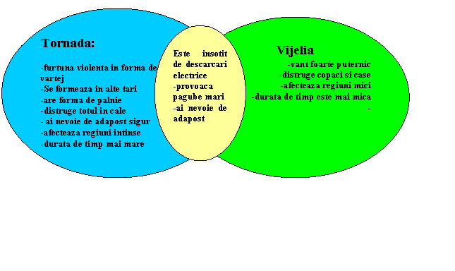 Diagrama Venn : Precizati asemanari si deosebiri intre o vijelie si o tornada