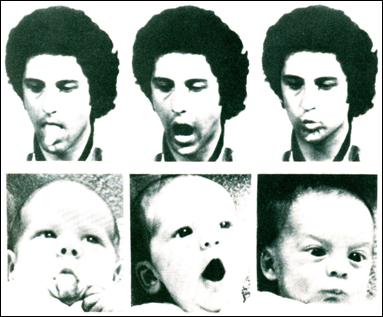 Dintre clasicii psihologiei dezvoltării s-au referit la această capacitate psihologul american J. Baldwin (1902) și francezul H. Wallon (1934). Acesta din urmă a descris-o și explicat-o ca formă de mimetism primar, esențială în susținerea interacțiunii sociale a nou-născutului. Interesante sunt observațiile discipolului său, R. Zazzo (1945), publicate însă abia în 1988: urmărindu-și fiul în vârstă de 25 de zile, renumitul profesor face proba unui magistral blocaj cognitiv (vezi Caseta nr. 1).